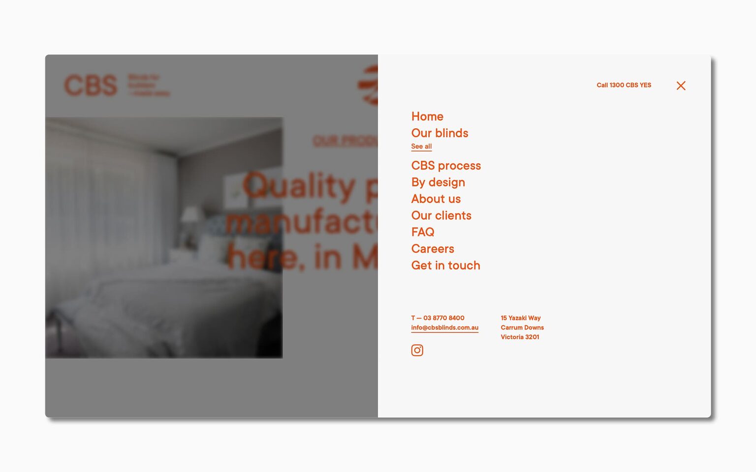 CBS Blinds ist ein Experte für die Herstellung und Installation von hochwertigen Fenstermöbeln. Bauherren, Entwickler, Architekten und Designer vertrauen auf die Qualitätsprodukte und den effizienten Prozess. Das Unternehmen erforscht die Konzepte von Licht, Schatten, Material und Farbe und entwickelte eine visuelle Identität, die CBS Blinds in neue, kühne Bereiche vorstößt und gleichzeitig die bestehenden Farben und Elemente erweitert und weiterentwickelt, um das Erbe des Unternehmens zu bewahren.