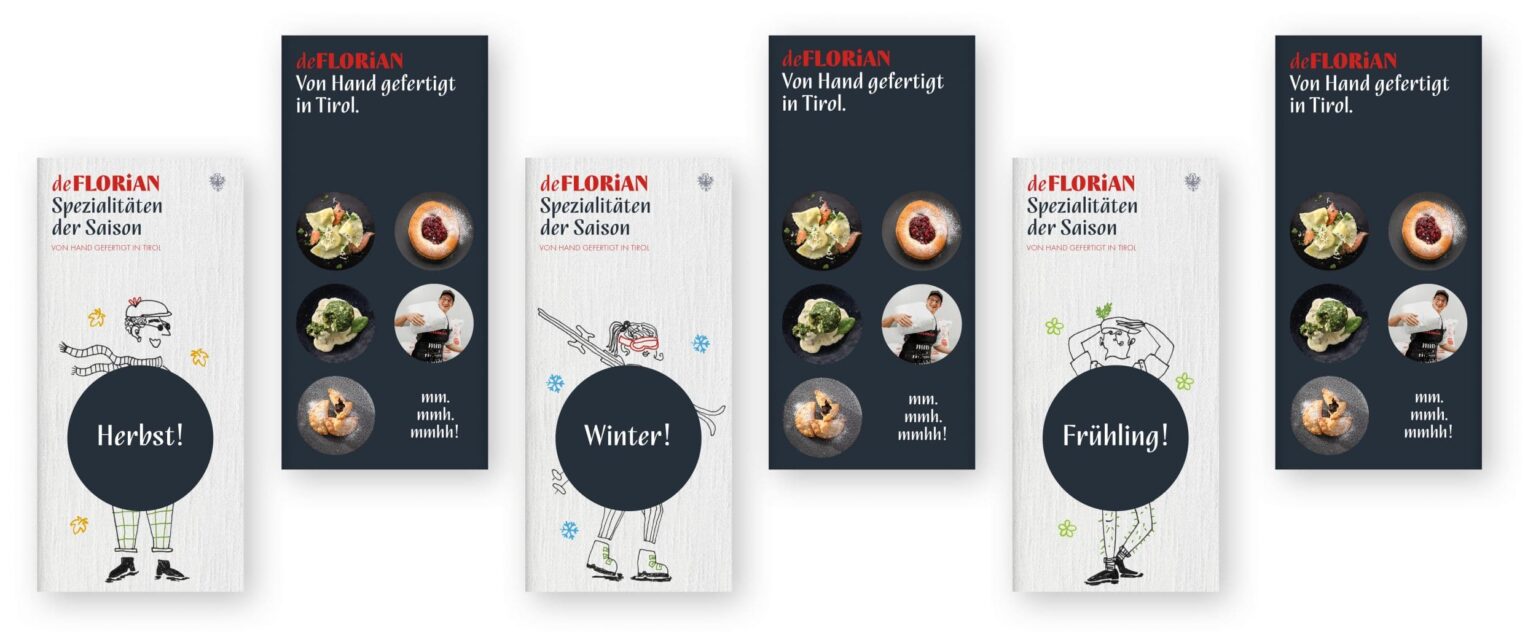 deFLORIAN ist bekannt für seine handgemachten Tiefkühlgerichte wie Knödl, Schlutzkrapfen, Rindsrouladen, Herstlsuppe und andere Tiroler Gerichte, die man leicht zu Hause zubereiten kann.