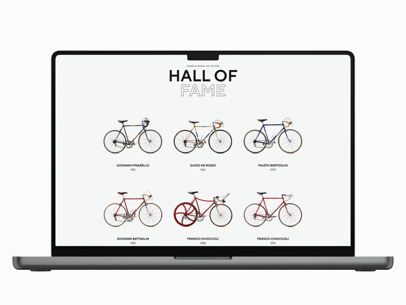 Font für die Website. Das italienische Unternehmen Pinarello ist weltweit als Hersteller von hochwertigen Fahrrädern bekannt, die dem Niveau des professionellen Radsports entsprechen.