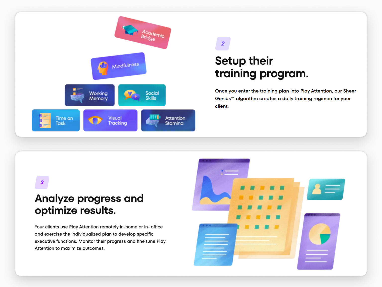Die Aufmerksamkeitsdefizit-Hyperaktivitätsstörung (ADHS) kann als eine Eigenschaft mancher Menschen angesehen werden, die Welt um sie herum detaillierter wahrzunehmen. In bestimmten Situationen kann diese Eigenschaft jedoch die Konzentration und die Erfüllung von Aufgaben behindern. Das Programm Play Attention bietet täglich 10-minütige Übungen, die darauf abzielen, die Konzentration zu verbessern, die Planungsfähigkeit zu steigern, die Aufgabenleistung zu erhöhen, das Gedächtnis zu stärken und die emotionale Regulierung zu fördern.