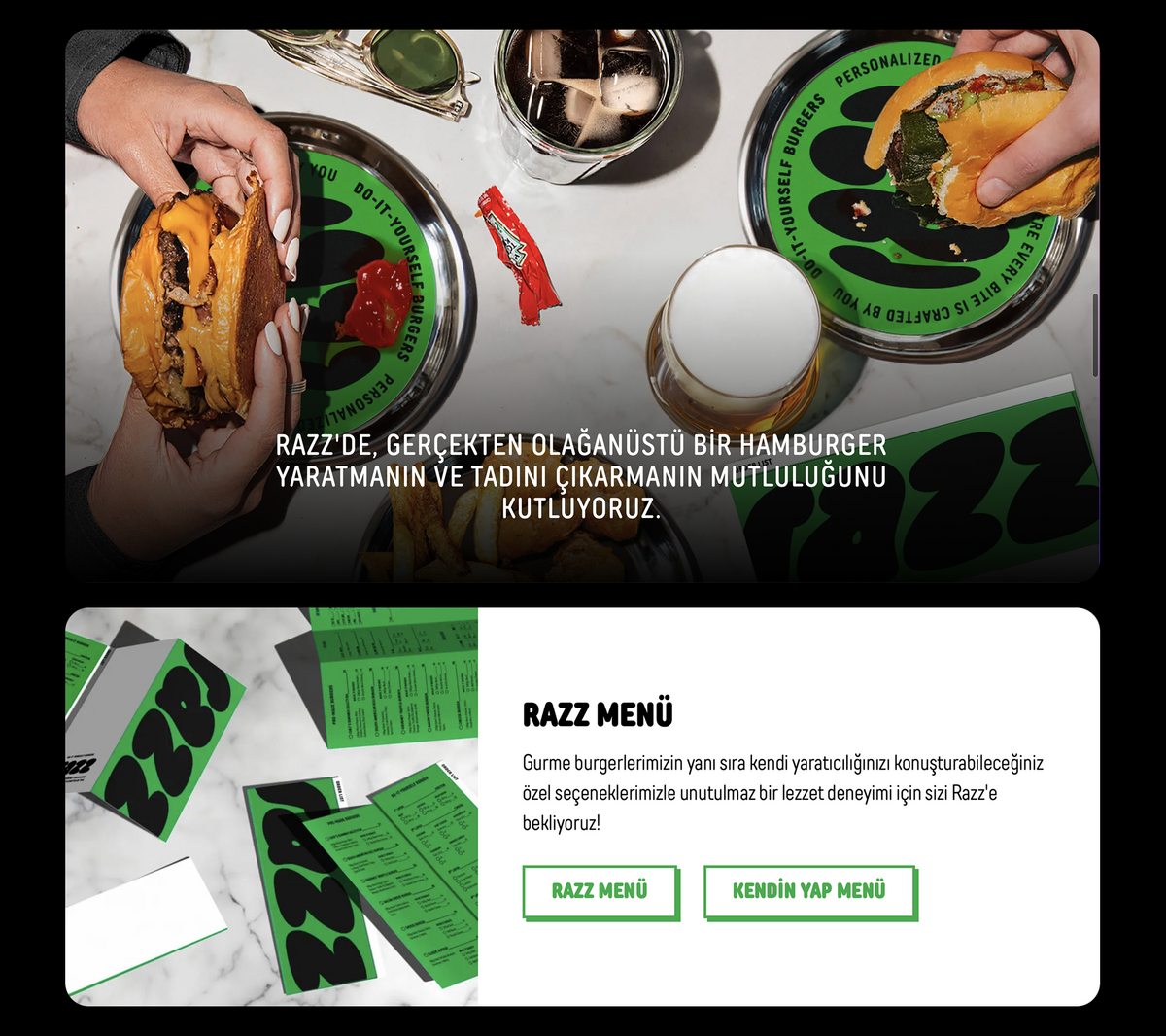 Die Schrift TT Rounds Neue wird für die Gestaltung der Website und Broschüren des Unternehmens Razz Burger verwendet, einem türkischen Fast-Food-Restaurant in Izmir.