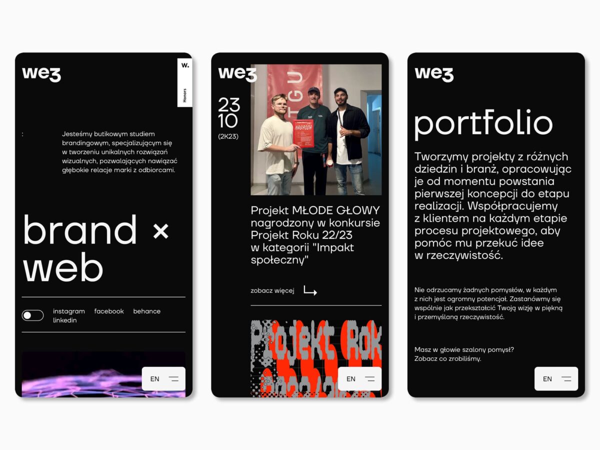 Folgen Sie dem Link: we3studioAuf dieser Seite finden Sie eine ständig aktualisierte Sammlung von Beispielen für TypeType-Schriften im Einsatz. Hier können Sie sich von schönen Bildern inspirieren lassen oder eine Schrift, die Ihnen gefällt, mit den Augen eines anderen Designers betrachten. Senden Sie Ihre Projekte mit unseren Schriftarten an marketing@typetype.org. Die besten Fälle werden auf dieser Seite veröffentlicht!