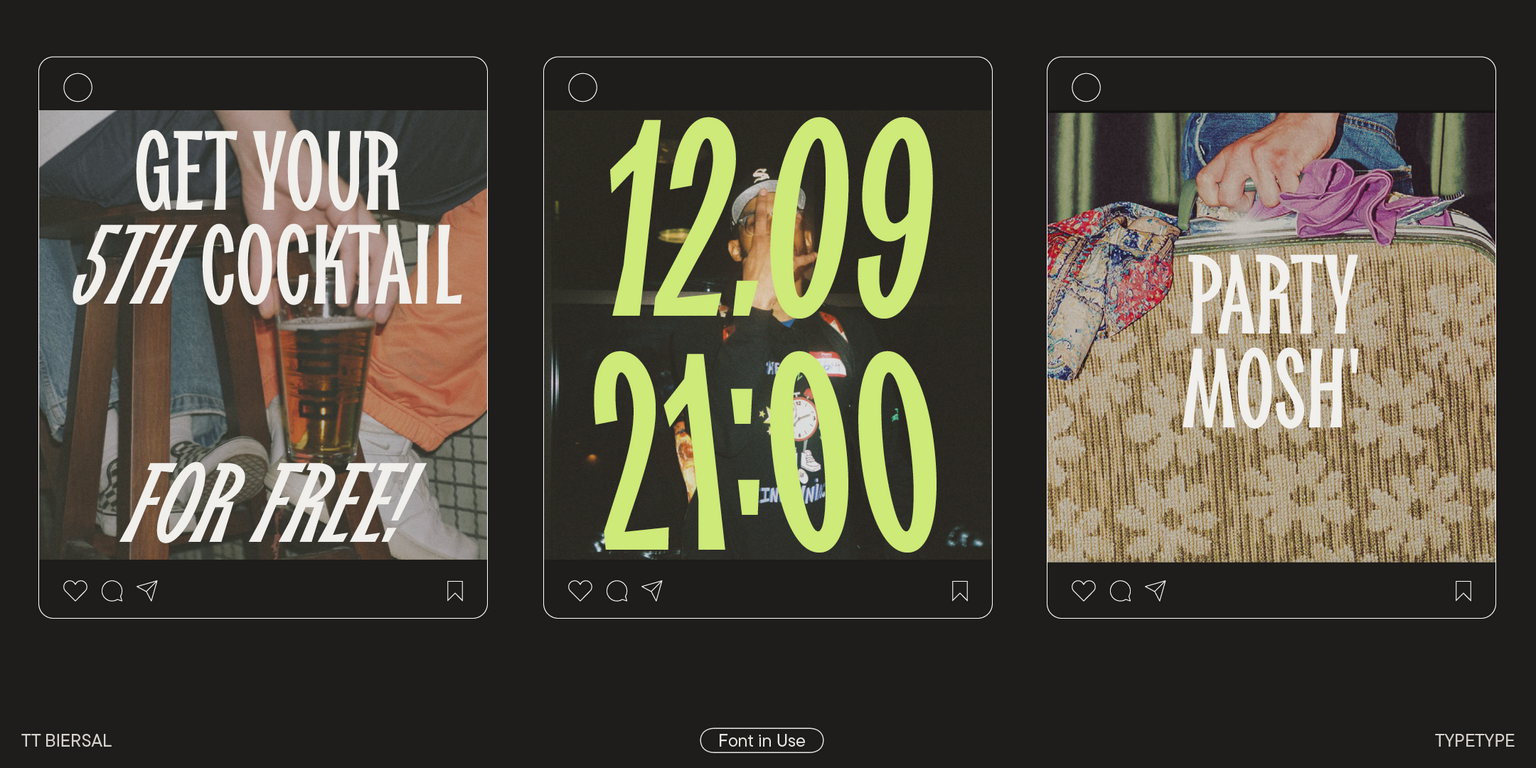 Wir stellen unsere neue ausdrucksstarke TT Biersal vor — eine authentische und energiegeladene Schriftart, die von der Typografie des frühen 20. Jahrhunderts inspiriert ist.