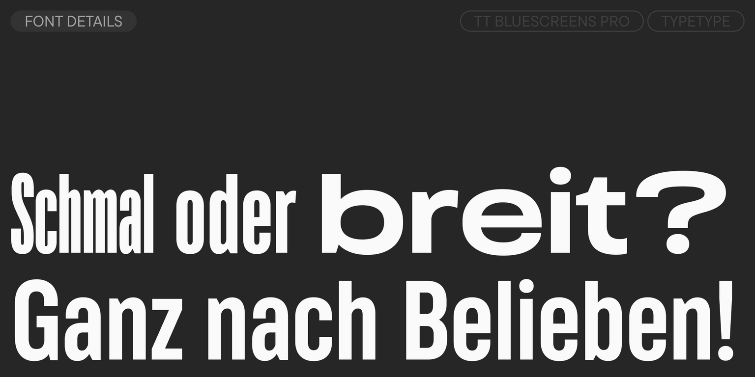 - 5 Unterfamilien: Condensed, Normal, Expanded, Extended und die Basis TT Bluescreens Pro