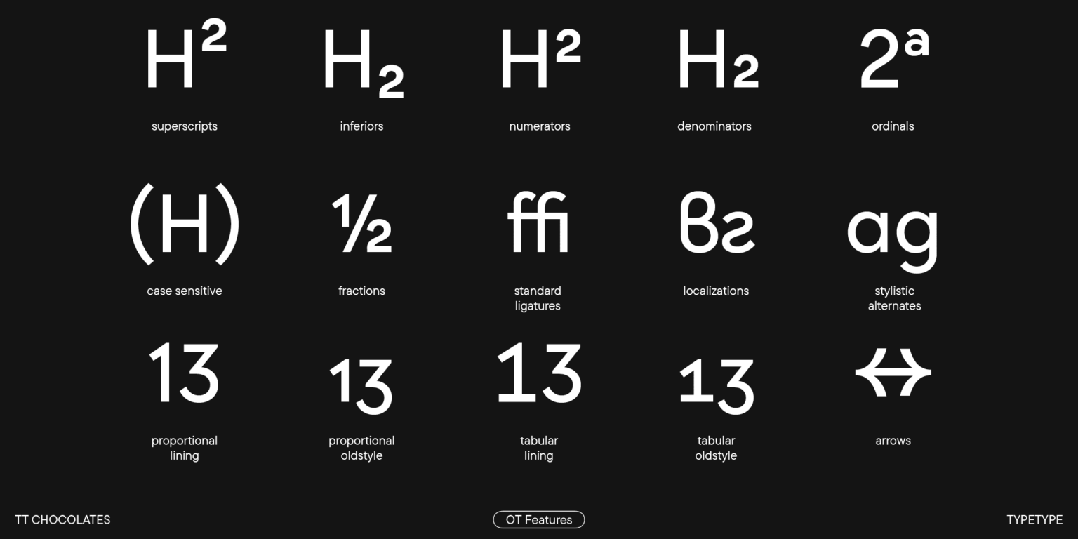 Im Jahr 2023 haben wir uns entschlossen, eine umfassende Aktualisierung der Schriftart vorzunehmen, die sich auf eine umfangreiche Marktforschung über serifenlose Schriften stützt. Wir haben herausgefunden, wohin die Trends gehen und was die Nutzer wollen – diese Informationen haben uns geholfen, die TT Chocolates zu verbessern.