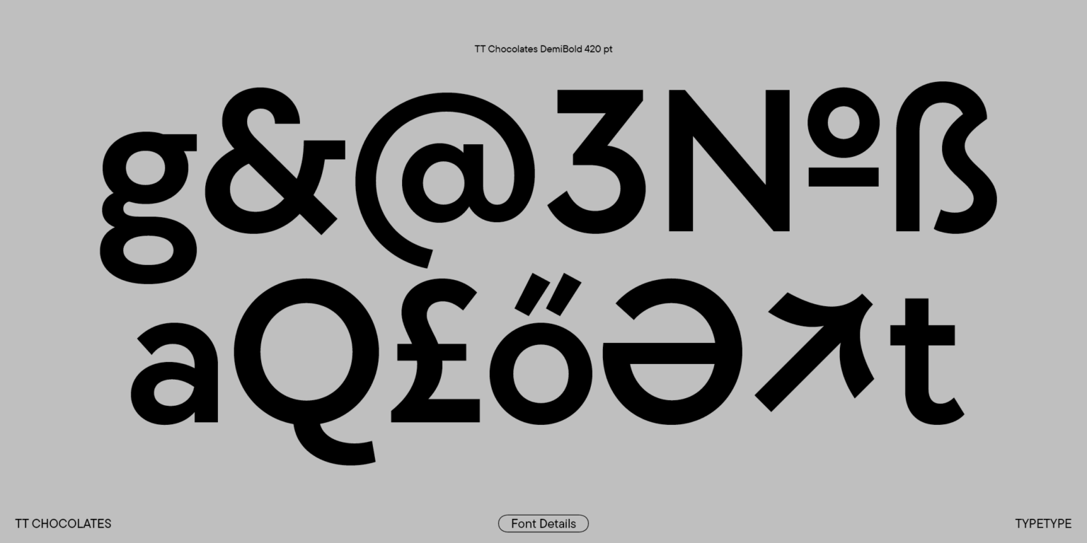 Konkret haben wir eine neue Condensed-Version eingeführt, eine schmale Schriftart mit den authentischen Proportionen der Standardversion. Gleichzeitig ist die TT Chocolates Condensed ausdrucksstärker als die Basis-Unterfamilie, was es Designern ermöglicht, noch mehr kreative Aufgaben mit nur einer Schriftart zu lösen.