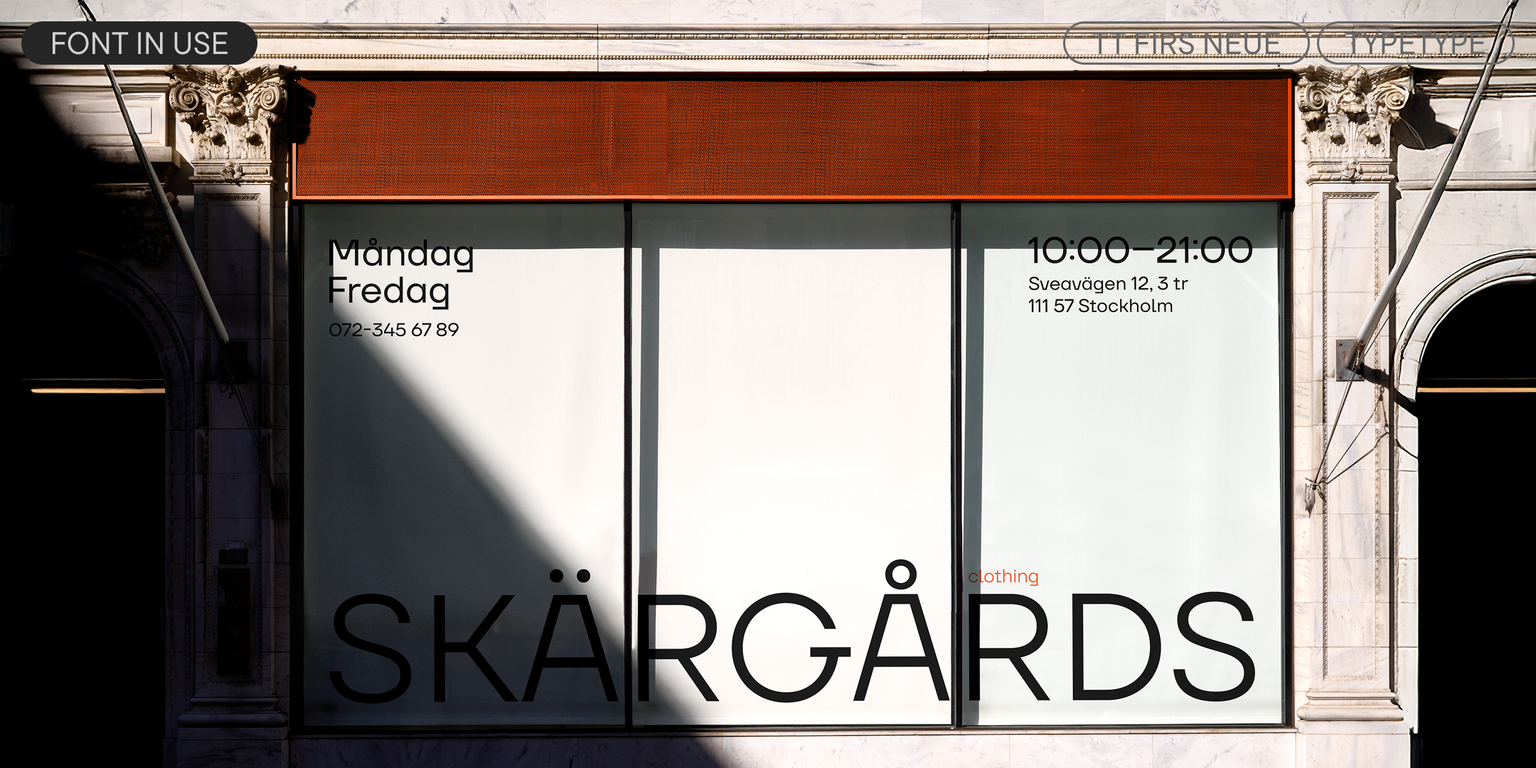TT Firs Neue ist eine Bestseller-Schriftart, die große Beliebtheit genießt, auch im europäischen Branding. Sie ist in Museen, Architekturbüros und Cafés zu sehen und passt perfekt zur skandinavischen Ästhetik. TT Firs Neue eignet sich für Überschriften oder Textauszüge und ist ideal für Branding oder Webnutzung. Sie wirkt ästhetisch ansprechend auf Podcast-Covern oder Video-Thumbnails, in Schaufensterdisplays und Schildern und ist ideal für die Gestaltung von Markenidentitäten und Verpackungsdesigns.