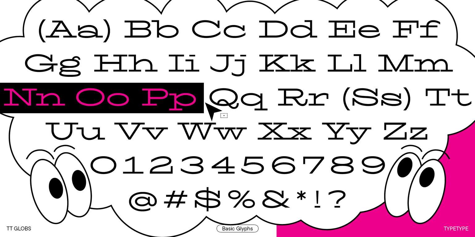 TT Globs ist eine elegante, wild proportionierte Slab-Serifenschrift mit freundlichem Charakter und sommerlicher Ausstrahlung. Bei der Gestaltung haben wir versucht, historische Slab-Serif-Formen mit modernen Schriftkonzepten zu kombinieren. Das Ergebnis ist eine relevante, frische und unverwechselbare Designerschrift.
