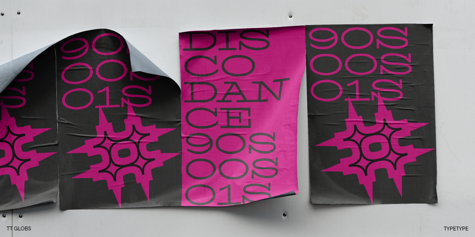 TT Globs ist eine Schrift für besondere Anlässe, die sich in jede Schrift-Garderobe einfügt und den schlichten Optionen Abwechslung verleiht. Diese Schrift kann leicht Teil der Markenidentität eines Musikfestivals, einer jugendlichen Bekleidungs- oder Schmuckmarke, einer trendigen Bar oder einer Straßenkunstausstellung werden.