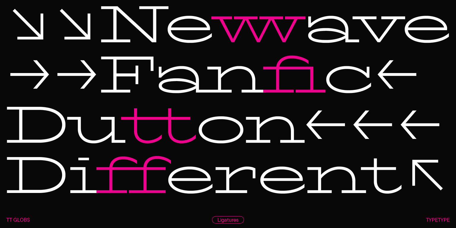 Das wichtigste visuelle Merkmal der TT Globs sind ihre langen Serifen, die in Kombination mit den