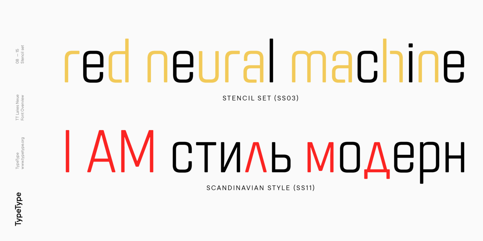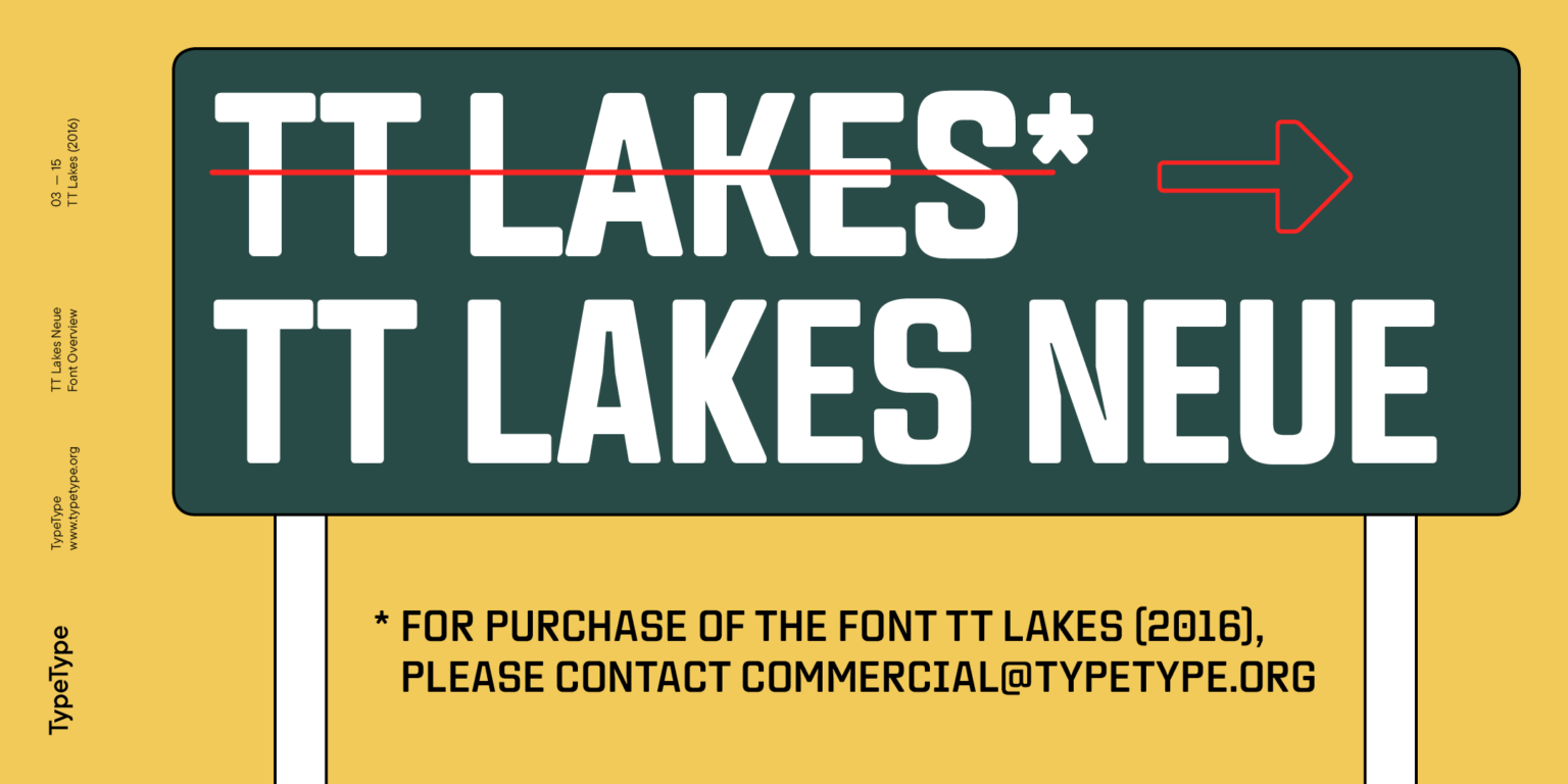 Bitte beachten Sie, dass die Schriftart TT Lakes von den Plattformen entfernt wurde, aber Sie können sie immer noch bestellen, indem Sie eine Anfrage an die kommerzielle Abteilung des Studios schicken: commercial@typetype.org.