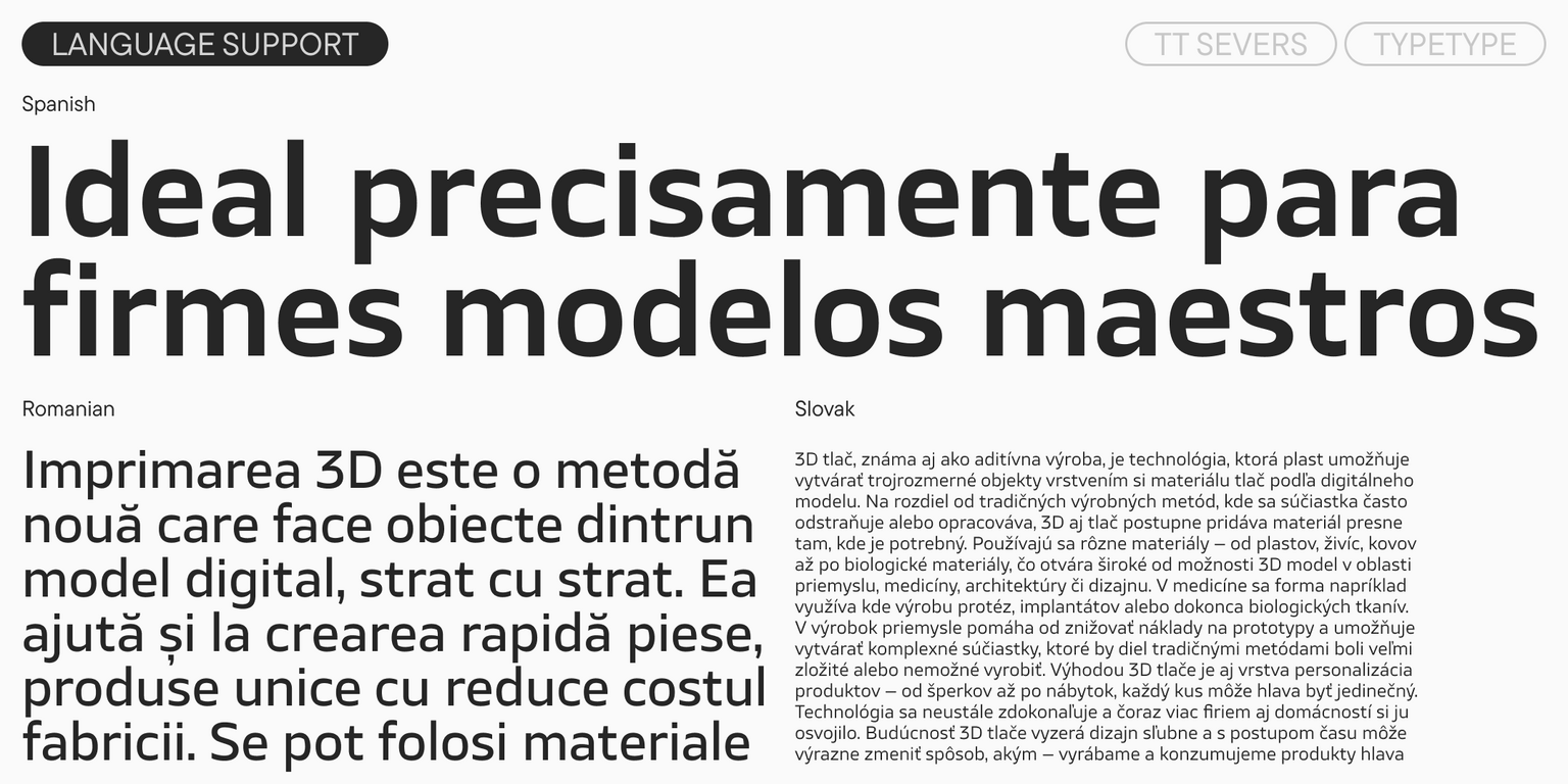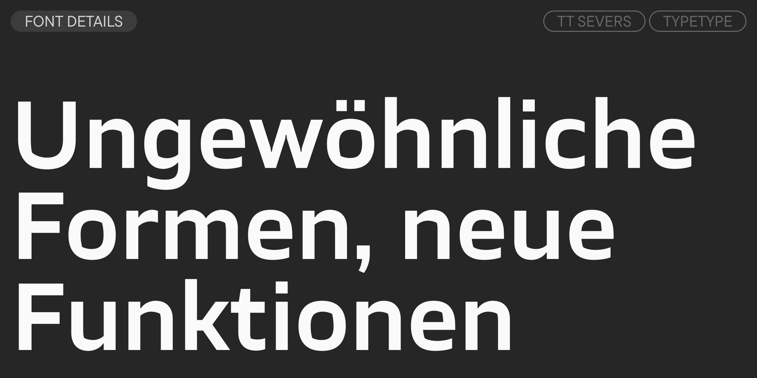 TT Severs ist ein humanistischer Grotesk mit offenem Charakter und markanten Elementen. Die besondere Eigenschaft dieser Schrift ist die ungewöhnliche Form der inneren Ovale, deren Anschlüsse auf eine kalligraphische Basis verweisen.