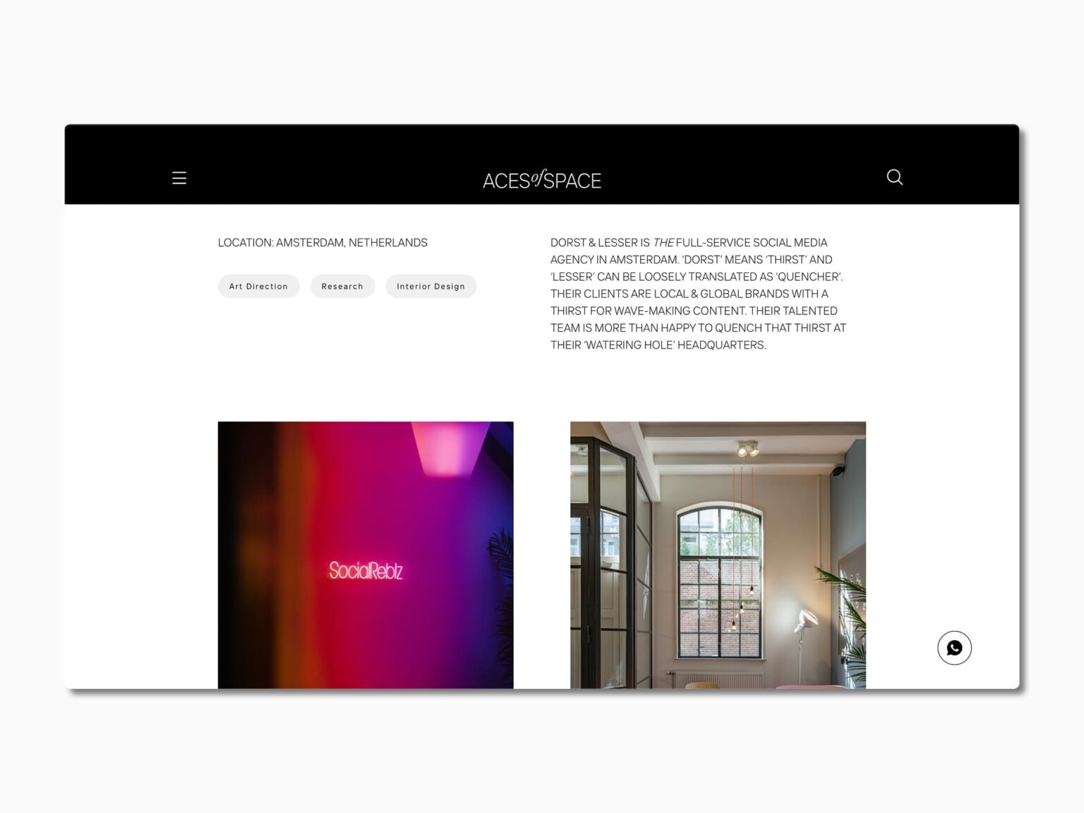 Aces of Space es una agencia creativa con sede en los Países Bajos y los Emiratos Árabes Unidos. Aces of Space desarrolla marcas, estrategias y conceptos con el objetivo de crear experiencias multidimensionales para comercio minorista, restaurantes, hoteles y más.