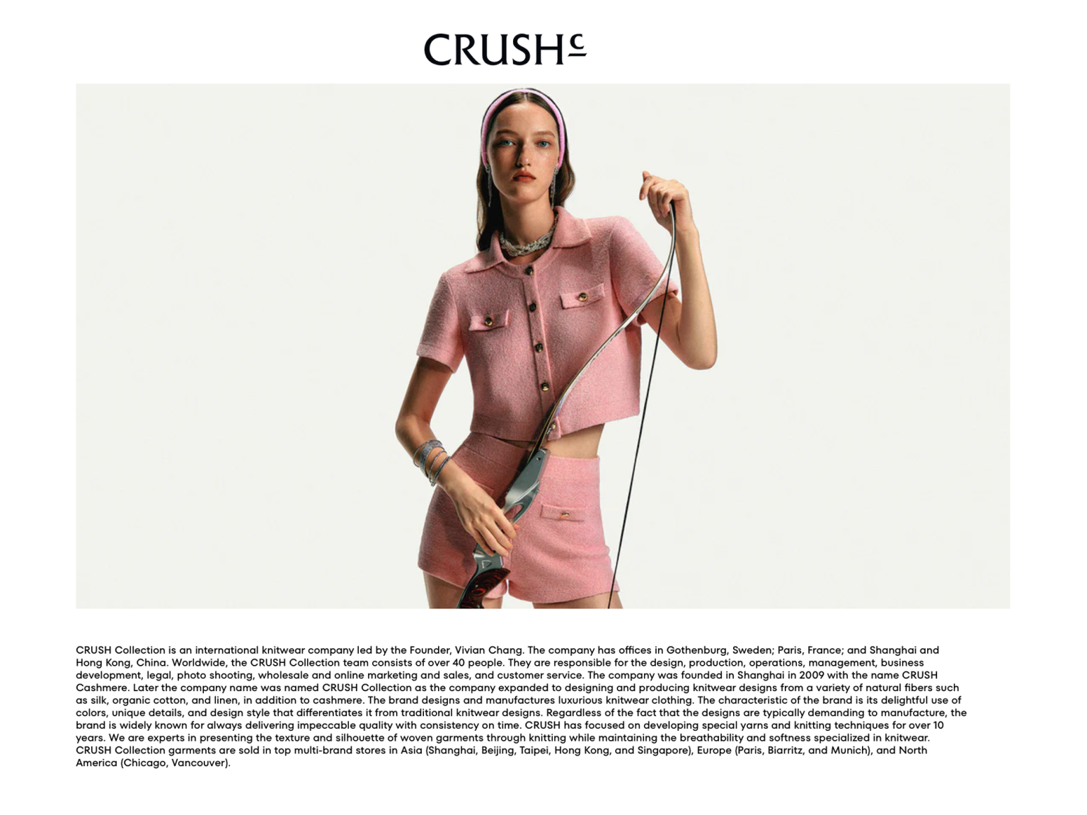 CRUSH Collection es una marca internacional de ropa de punto y crochet que durante años ha deleitado a sus clientes con prendas cálidas y sofisticadas al estilo Old Money.