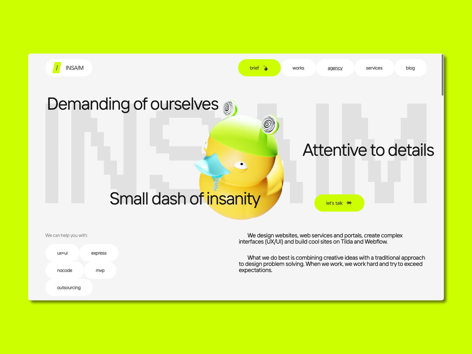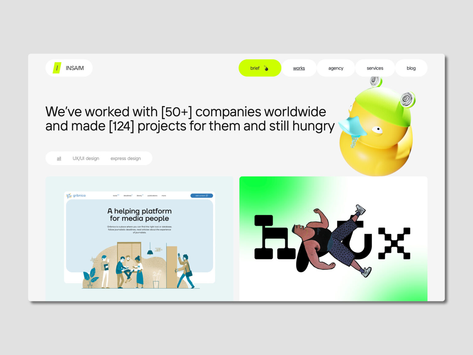Insaim es un estudio que ofrece a sus clientes servicios de desarrollo web, diseño de producto, diseño UX y diseño web.
