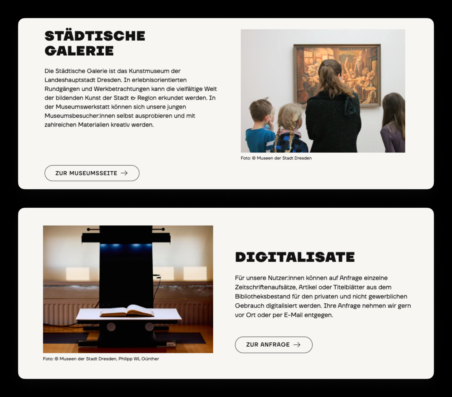 Museen der Stadt Dresden es una unión de varios museos importantes que narran la historia, el arte y la cultura de Dresde. La fuente se ha convertido en un elemento clave de un sistema visual flexible y unificado, que garantiza una percepción coherente para todos los museos que forman parte de esta unión.