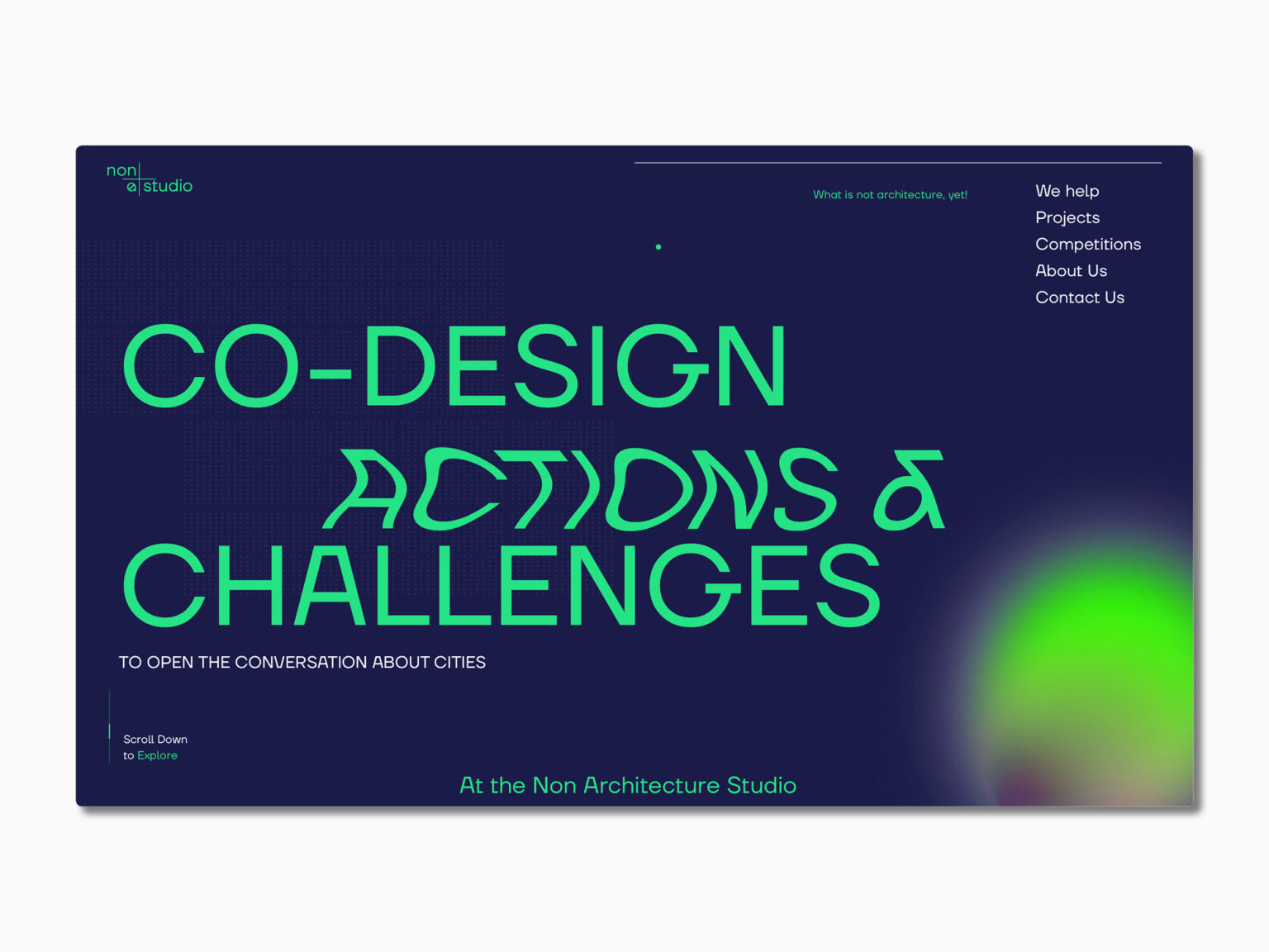 Non Architecture desarrolla iniciativas, entornos y proyectos para explorar soluciones de diseño innovadoras y modelos experimentales de colaboración. Hoy es un portal para concursos de diseño, una comunidad de arquitectos y no arquitectos, una revista online de código abierto, una editorial independiente y un estudio de diseño remoto.