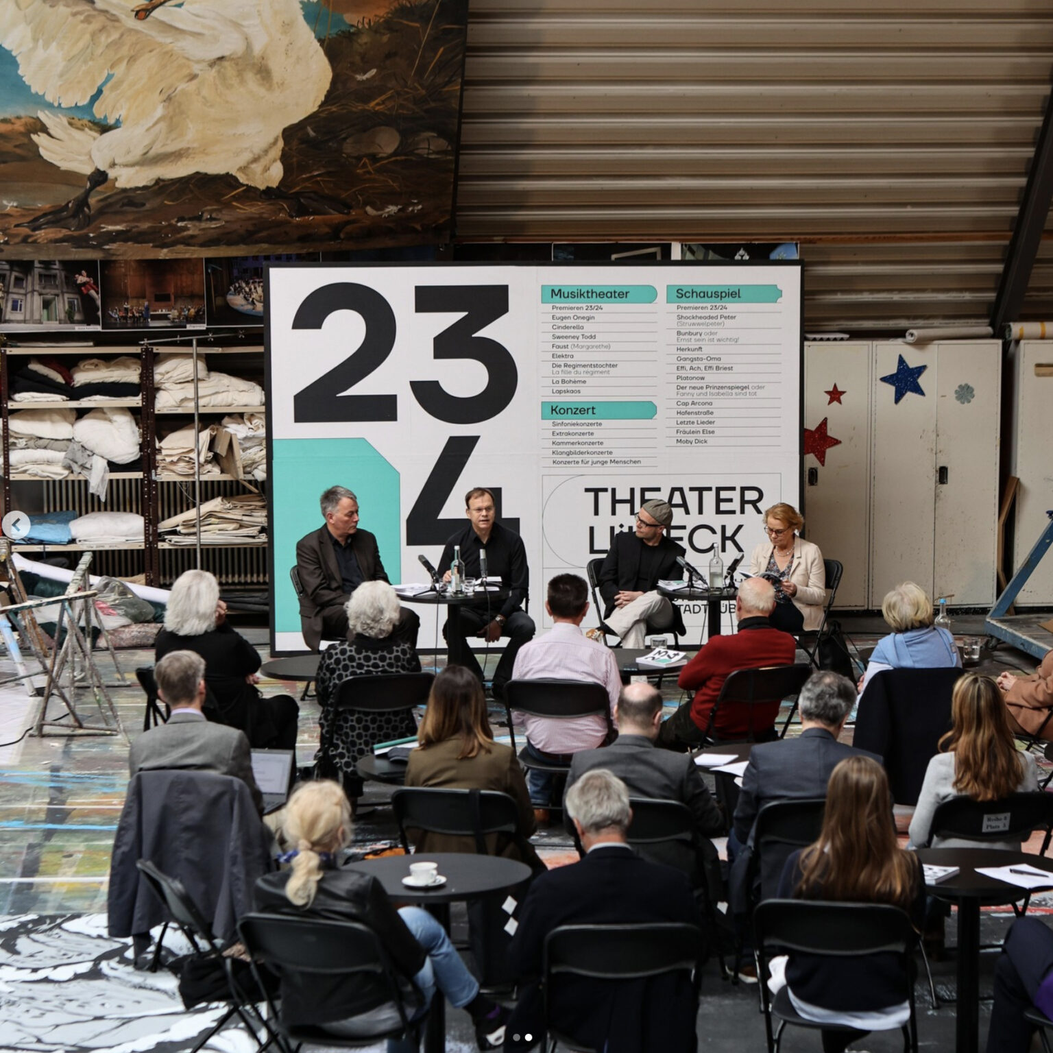 El teatro ofrece todo tipo de eventos culturales, incluyendo ópera, ballet, música de cámara y obras de teatro, así como conciertos de la Orquesta Filarmónica de Lübeck.