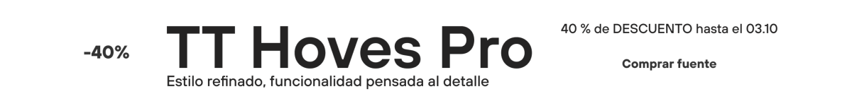 TT Hoves Pro es una sans serif escandinava que susurra elegancia minimalista. A la vez discreta y distintiva, es el arma secreta del diseñador, capaz de convertir desafíos complejos en poesía visual con una precisión sin esfuerzo.