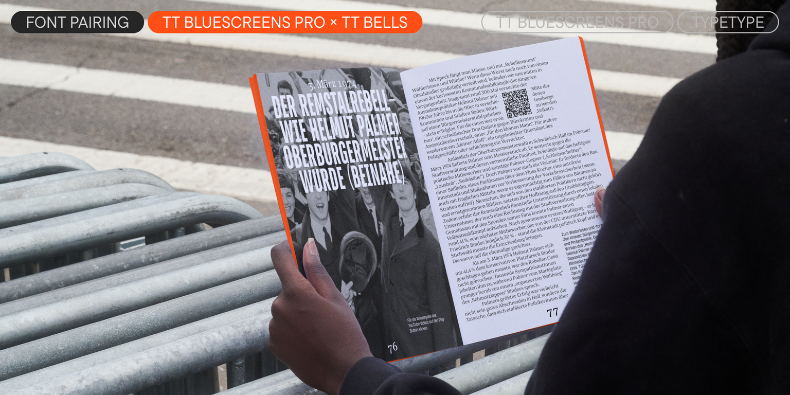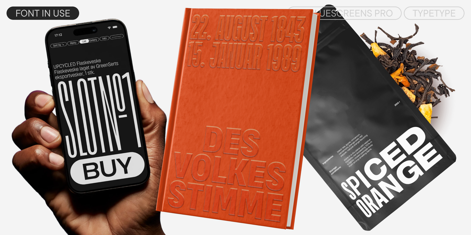 Gracias a sus rasgos visuales y a su riqueza funcional, TT Bluescreens Pro puede utilizarse en proyectos completamente diferentes. Esta fuente es adecuada para branding, diseño de envases, diseño de portadas, pósteres y anuncios de eventos, y también resultará estética en los créditos y los avisos legales de películas.