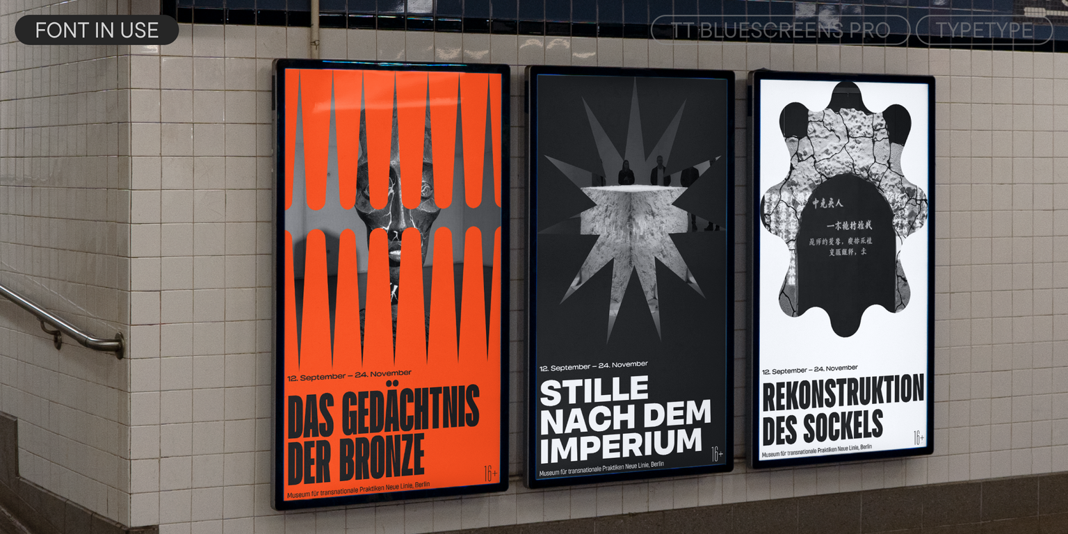 TT Bluescreens Pro es una sans serif modular con un carácter distintivo. En 2015 creamos esta fuente específicamente para los pósteres y los créditos de películas, y sus proporciones estrechas eran su rasgo diferenciador. Sin embargo, con el tiempo, TT Bluescreens cambió, volviéndose más versátil y funcional. En 2023 lanzamos la tercera versión de la fuente, añadiendo una subfamilia aún más estrecha y el cirílico ampliado. Pero no nos detuvimos ahí.
