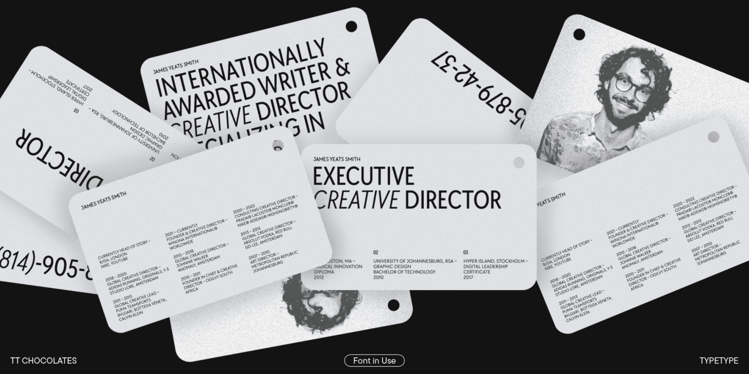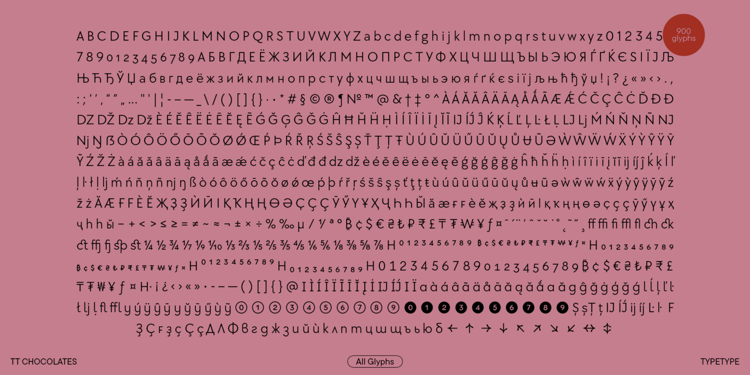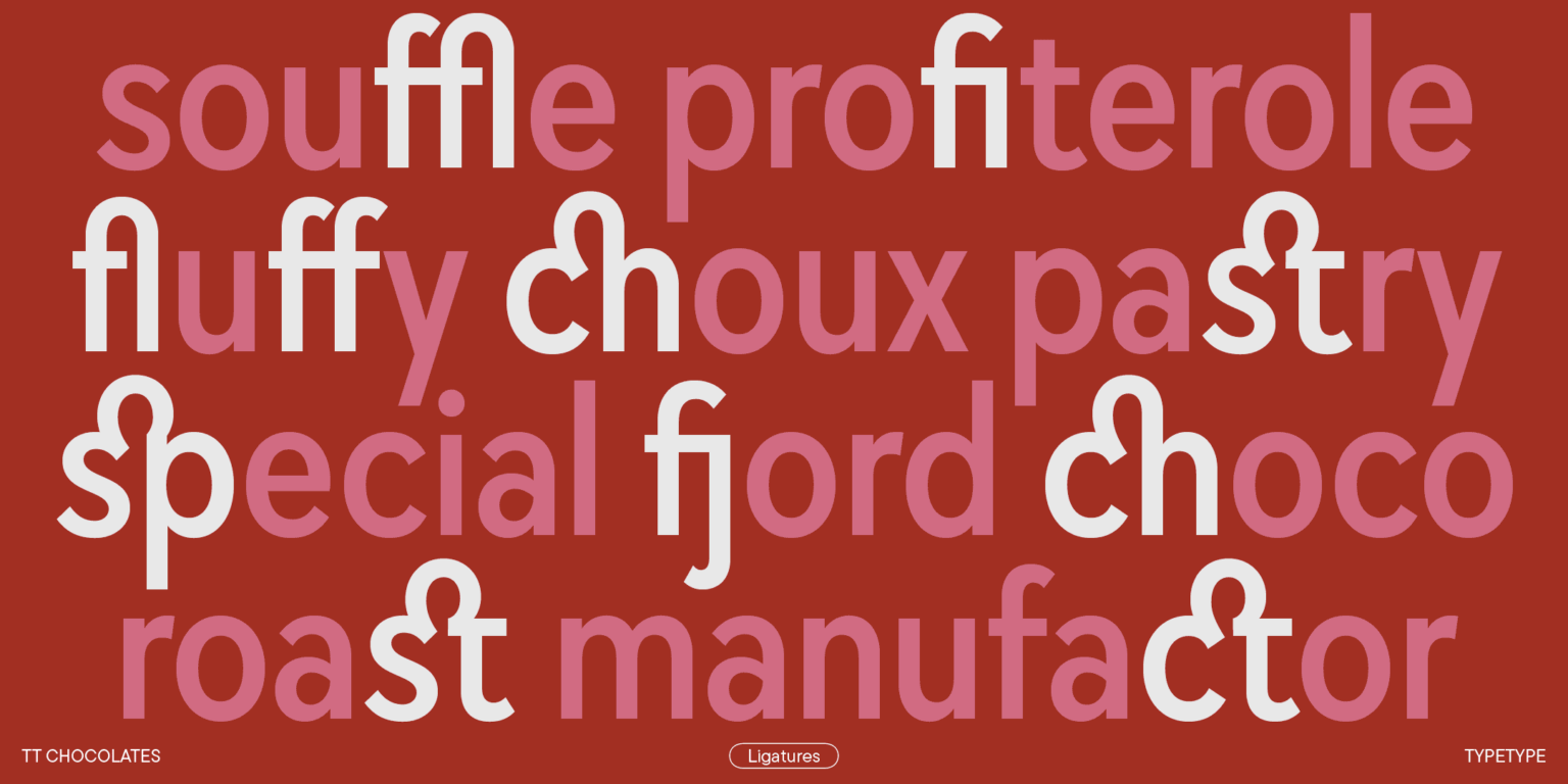 El tercer TT Chocolates se ha vuelto aún más armonioso, más avanzado tecnológicamente y más moderno. Una amplia gama de caracteres, una gran cantidad de funciones OpenType y conjuntos estilísticos permiten utilizar la fuente para diversas tareas. Es igualmente adecuado para branding y diseño. Gracias a las formas dinámicas, TT Chocolates es fácil de leer en texto pequeño, lo que permite que el ojo se mueva fácilmente a lo largo de la línea. También se puede utilizar en la web gracias a las sugerencias manuales TrueType.
