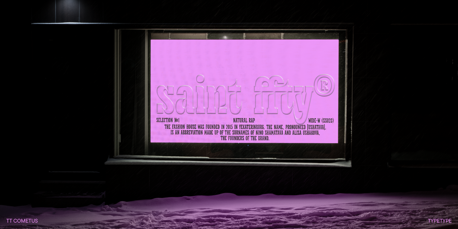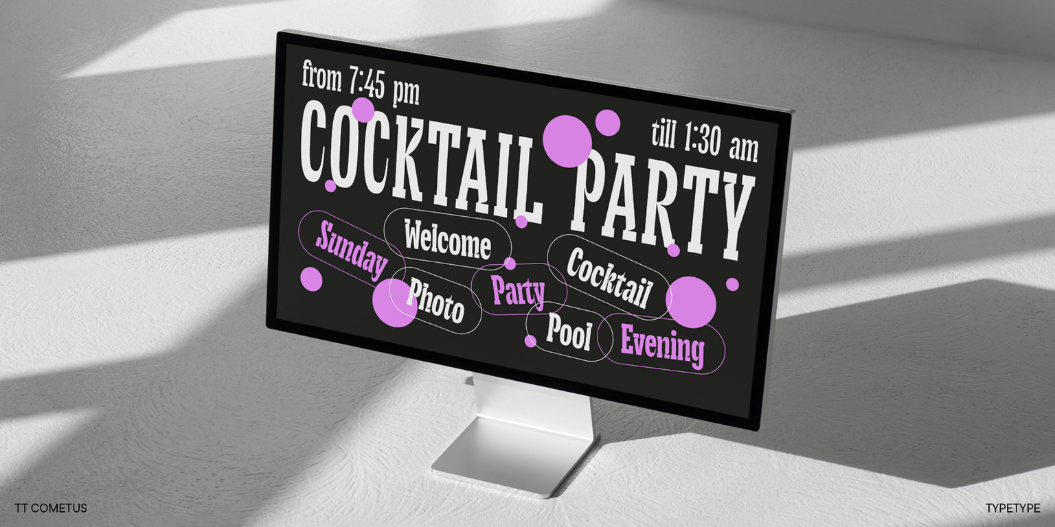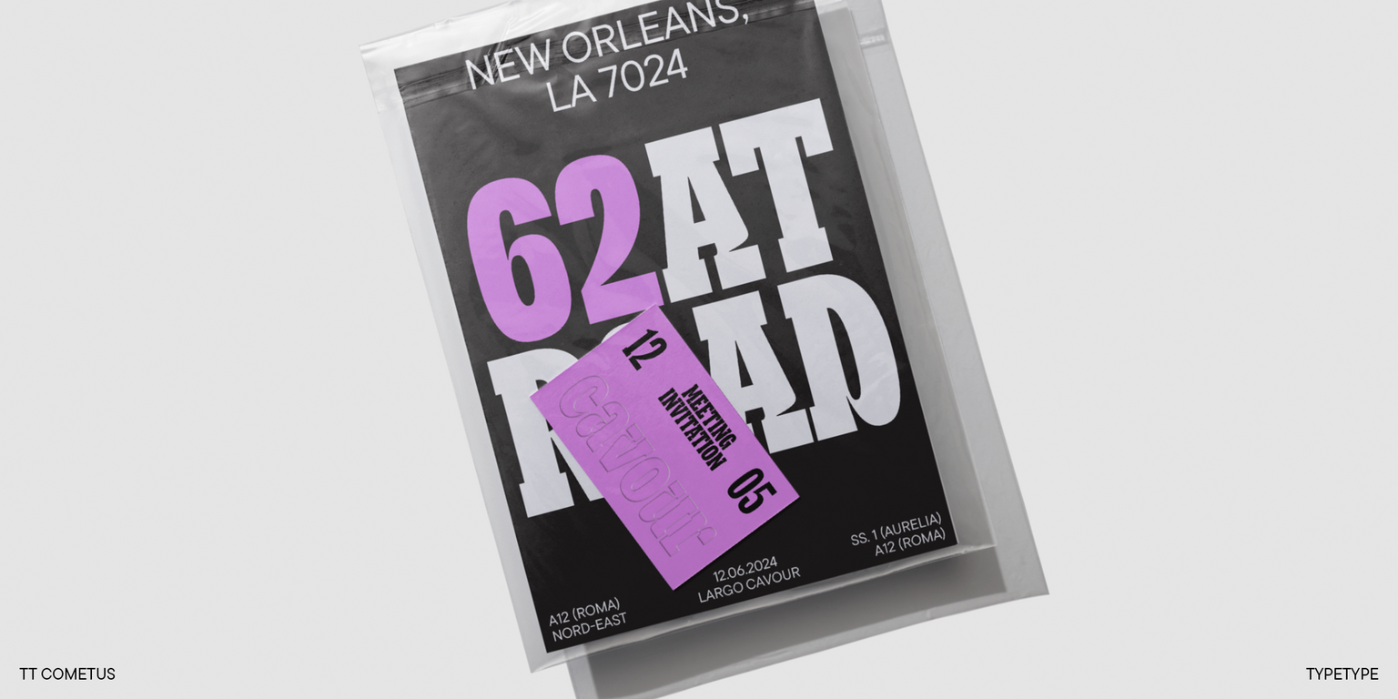 TT Cometus shines best in large point sizes. This font is anything but neutral! It’s eye-catching and looks flawless in headlines, logos, and branding — wherever attention needs to be captured.