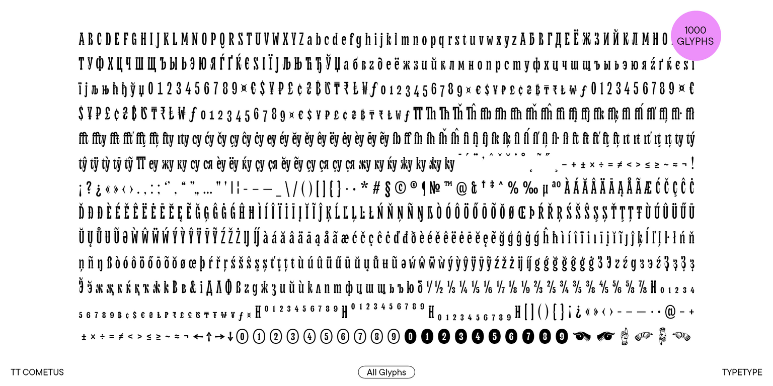 Introducing TT Cometus, version 2.000, which now supports Cyrillic alphabets! We significantly enhanced the font’s character set and technical features.