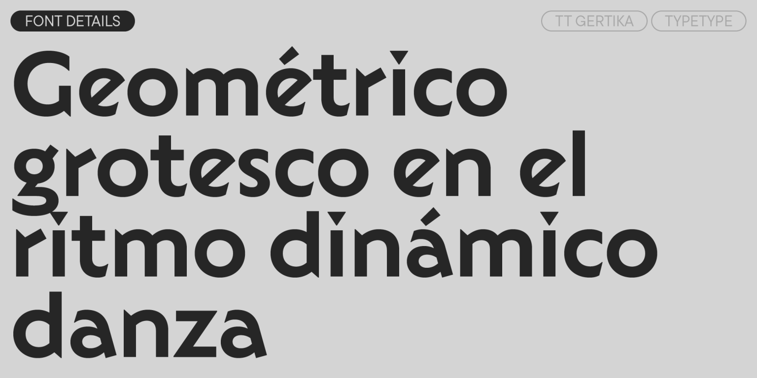 TT Gertika — es un grotesco geométrico con carácter dinámico y un ritmo bailable. La idea de la fuente se origina a partir de las letras que aparecen en cartel estadounidenses en la segunda mitad de los años 30. Vimos muchos detalles interesantes y llamativos en las letras y decidimos reimaginarlas. Cómo resultado, obtuvimos una fuente que hace referencia a algo antiguo, incluso primitivo, pero al mismo tiempo moderno.