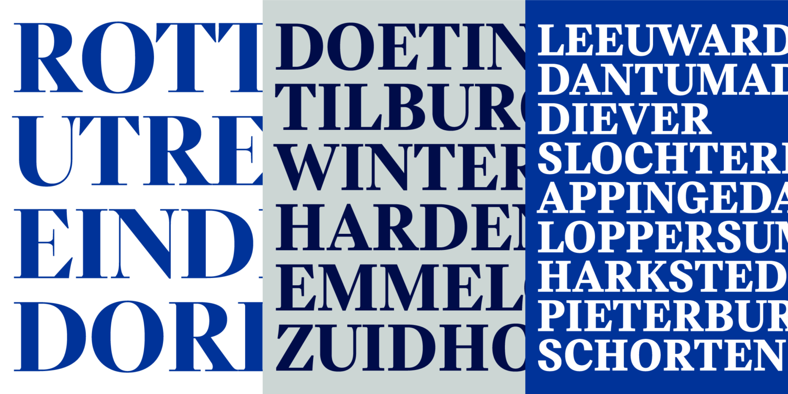 La subfamilia de texto tiene proporciones de igual ancho y un carácter tranquilo, caracteres redondos ovalados, espacios libres y aberturas más abiertas. En la subfamilia de pantallas brillantes, las proporciones varían en ancho, los caracteres redondos están lo más cerca posible de un círculo, las aperturas están cerradas y el espaciado es denso. La fuente tiene una subfamilia intermedia: Subhead, que puede verse más tranquila como fuente de texto o contrastar y usarse como fuente de visualización.