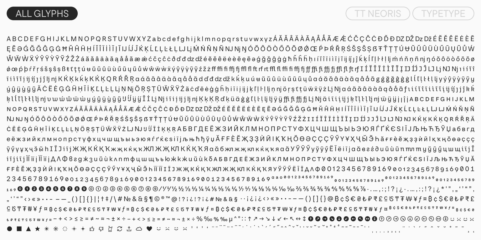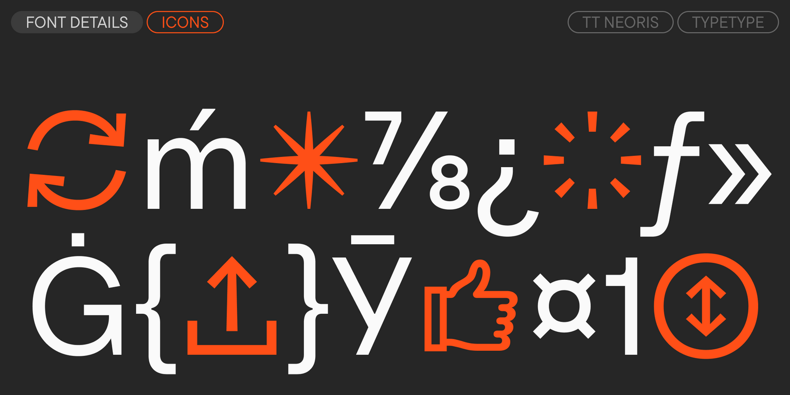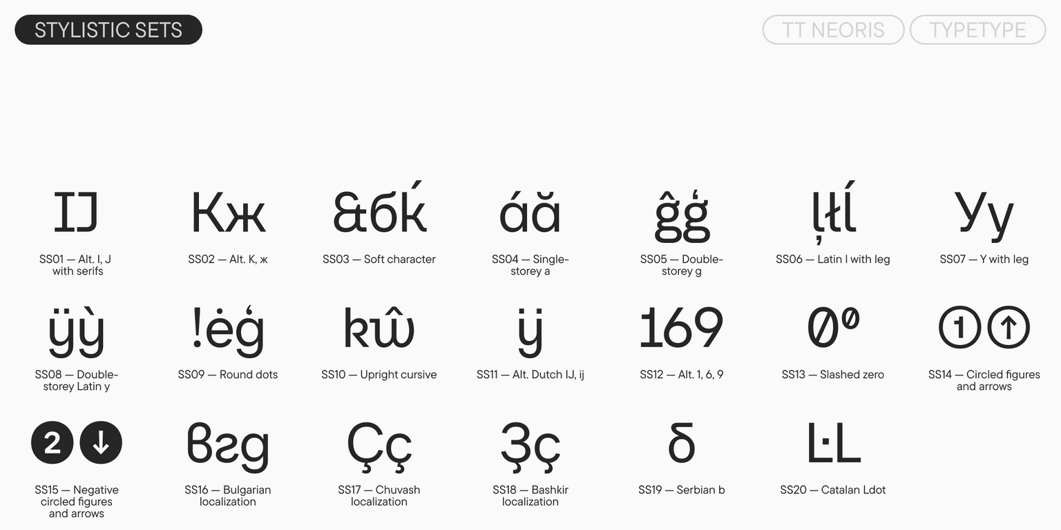 Esto es exactamente lo que resultó ser TT Neoris: tecnológicamente avanzado y funcional, absolutamente versátil y ultramoderno. Y también versátil y multivoz. Gracias a la gran cantidad de funciones, ¡esta fuente puede reemplazar varias a la vez! Puedes cambiar radicalmente el carácter de una fuente, convirtiéndola en una poderosa herramienta para tus proyectos.