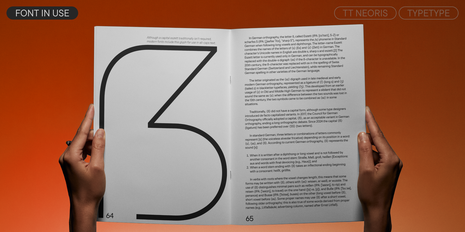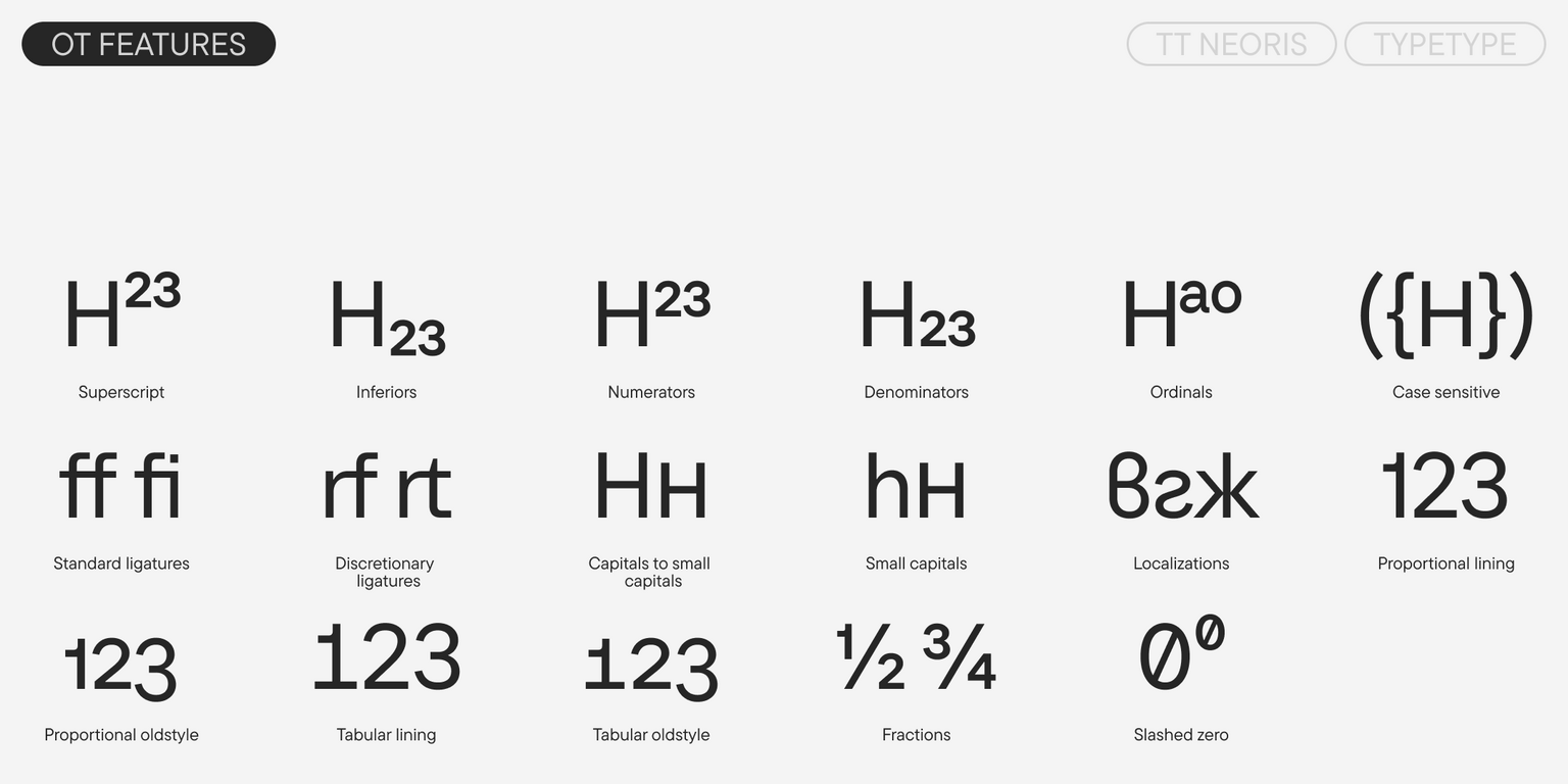 TT Neoris es un neogrotesco lacónico con posibilidades ilimitadas. Una fuente que incorpora todos los requisitos y deseos modernos de los usuarios. Caja de caracteres grande, soporte para más de 230 idiomas y un gran conjunto de funciones OpenType: ¡lo tiene todo para su diseño (y aún más)!