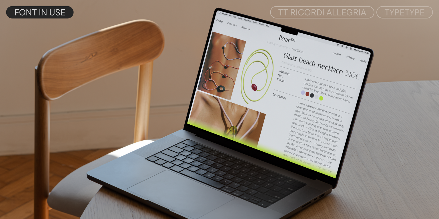 TT Ricordi Allegria is a modern high-contrast sans with an intelligent character. It is an original project by Antonina Zhulkova, developed as part of the Ricordi font line. The main idea behind this unique series is the search for “typographic treasures” in old inscriptions on plaques and stones and bringing the most interesting ones back to life as modern fonts.