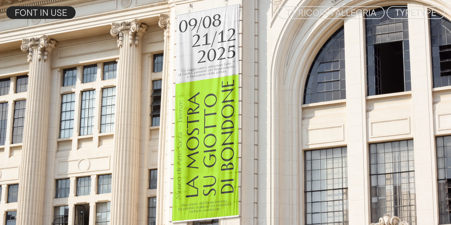 The inspiration for TT Ricordi Allegria came from the semi-erased inscriptions found in the Basilica di Santa Croce in Florence. The font’s design reflects a transitional stage between classic Antiqua and Florentine Grotesque. Its distinctive features are hyperbolized dynamic proportions, contrast between strokes, wedge-shaped stroke ends, and the absence of traditional serifs.
